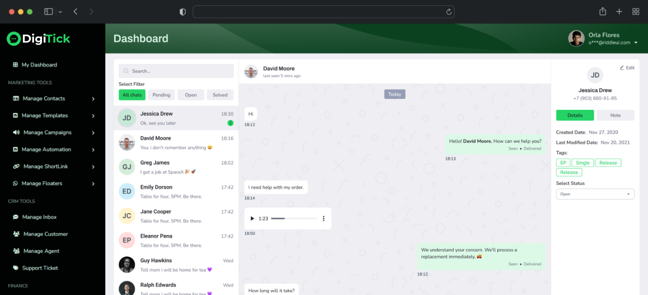 DigiTick is a complete cross-platform WhatsApp CRM and marketing tool that helps businesses manage conversations, automate customer engagement, and run marketing campaigns through WhatsApp.
